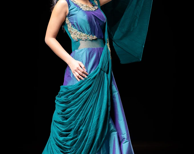 teal and gold dress
